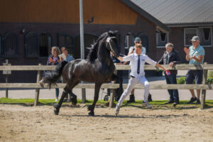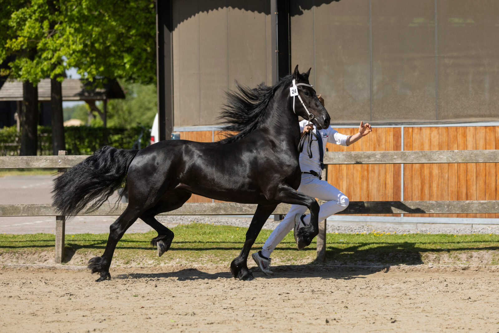 Fraai weer en een hele vlotte keuring typeerden de locatiekeuring waar 33 paarden en één veulen aantraden en 18 paarden met een Ster naar huis gingen, en een merrie Voorlopig Ster werd. Met drie rubrieken waren de driejarigen goed vertegenwoordigd. In de eerste rubriek kwam Tryntsje fan ,e Kamperdyk Ster (Boet 516 x Epke 474) van Siebren de Vries uit Witmarsum met een Ster eerste premie op kop. Een merrie met een edel hoofd, goede schouderligging, sterke bovenlijn en droog beenwerk, beschreef Piet Bergsma de merrie uit de familie van Jorke 532. ‘Ze stapt heel gemakkelijk met veel lichaamsgebruik en draaft opwaarts met een heel goed achterbeengebruik en veel zweefmoment.’ Tryntsje haar grootmoeder is een halfzus van KFPS stamboekhengst Jorke 532.