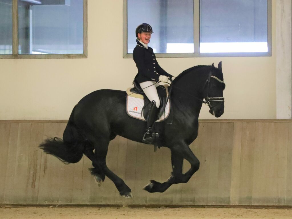 Stal Lueks in Diever heeft sinds een poosje de KFPS stamboekhengst Manno 541 (Fonger 478) ter dekking staan op diens station. De hengst, in eigendom van de familie De Vries/Faber uit Hindeloopen krijgt vanuit Diever de kans om zich te ontplooien tot een sporthengst en heeft daarin onlangs de beginselen gelegd. Op het concours in IJsselmuiden, waar hij debuteerde in handen van Albert, werd hij vierde in de limietklasse. Een dag later mocht hij mee naar het RAD-gala in Vlijmen en werd daar derde. Dit weekend mocht Manno 541 nogmaals mee van huis en wist hij zijn eerste overwinning te behalen in de limietklasse. “De hengst was goed over de benen en presenteerde zich meteen goede houding” zo luidde het jurycommentaar. In de limietklasse in Zijtaart pakte Abe Brandsma met Stal Brandsma’s Matzz (Ulbrân 502) de tweede plaats en werd Rob Landweer met Cornelis Oprecht (Alwin 469) derde.