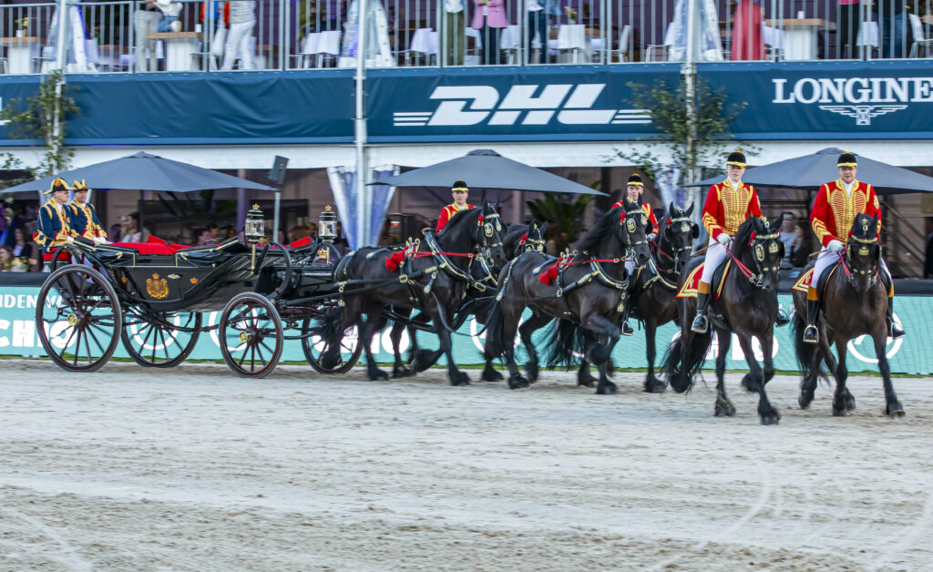 De oproep bereikte ook de in Alberta, Canada woonachtige Annie Muilwijk. Annie is actief bij de Alberta Quadrille: ‘Vijf jaar geleden werd onze club gevraagd om het vijfendertigjarig jubileum van de FHANA te organiseren. Toen bleek dat het laten overkomen van de Fryske Quadrille voor een show niet haalbaar was, hebben we zelf een groep bij elkaar gebracht. De sjezen zijn in Nederland door Jannes van der Wal gemaakt en naar Alberta verscheept. Frits de Jong en Roel van der Hoek van de Fryske Quadrille hebben ons ontzettend goed geholpen met de proef. We stuurden steeds trainingsfilmpjes naar Frits en Roel en kregen advies over wat er beter kon retour. Het was een leuke samenwerking.’