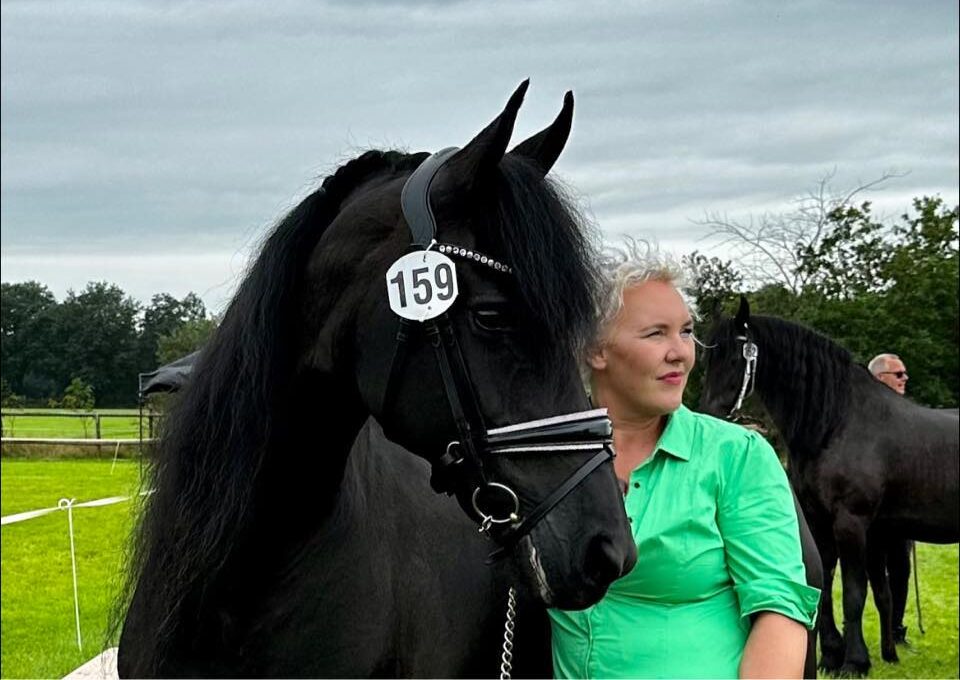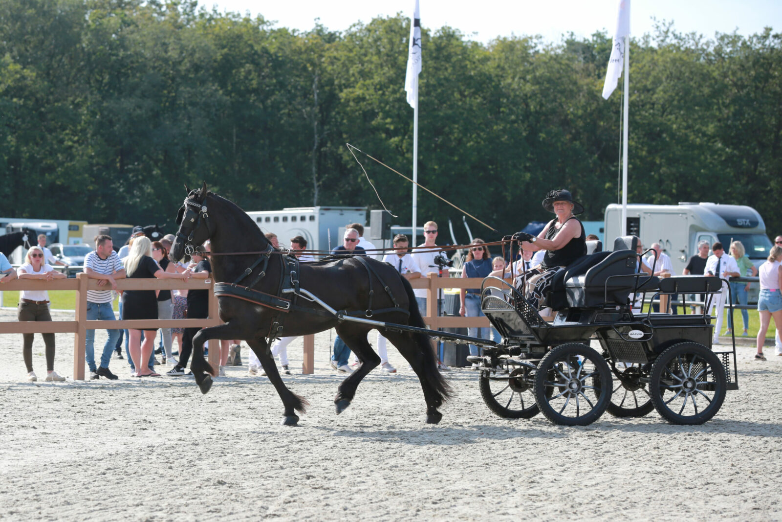 Naast de Modelmerries in de lange lijnen en aan de hand kwamen Diamant en Anita mennend door de baan, een eenmalige actie. Voor een plek in de kampioenskeuring kwamen ze niet in aanmerking, maar paard, menster en publiek beleefden er aardigheid aan. Anita haalde 25 jaar geleden haar koetsiersbewijs. ‘Maar daar heb ik nooit veel mee gedaan.’ Daar kwam kortgeleden verandering in. De 14-jarige Diamant is namelijk nog behoorlijk sportief. Anita rijdt aangespannen met haar, schoonzoon Ruben Toebes brengt haar uit in de ereklasse tuigen en man Piet maakt deel uit van een Friese carrouselgroep. ‘Ze is het toonbeeld van een allround Fries familiepaard’, aldus Anita die ook het karakter van de merrie roemt. ‘Zoals een typisch Fries paard: goudeerlijk, op mensen gericht en erg lief.’