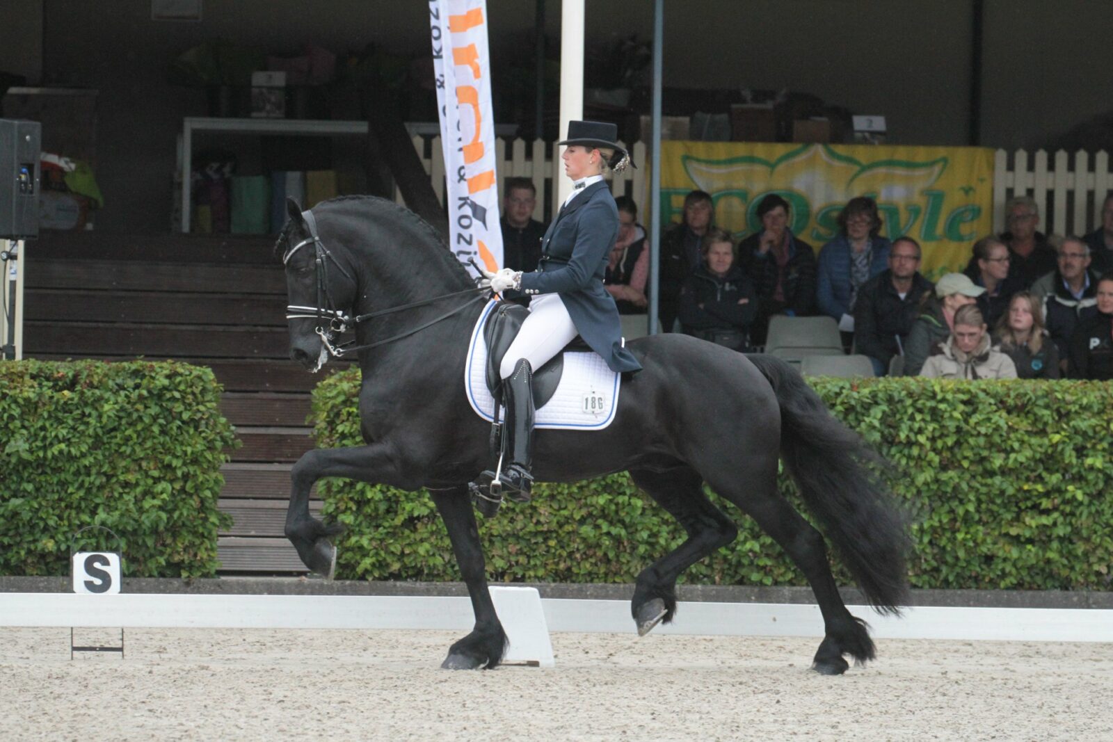 Over de proef met Geke was Marsja super tevreden. ‘Ik kon rijden zoals ik wilde. Van tevoren was ik nog even met haar naar Peter Spahn geweest. Zoals hij rijdt, zo mooi, en met zoveel energie en gemak, zo wil ik het ook. Het begin van de proef lukte dat ook aardig, daarna werd het iets meer werken. Maar wat kan ik verwachten na zo’n lange ‘stop’… Ongelooflijk blij dat ze er weer loopt!’