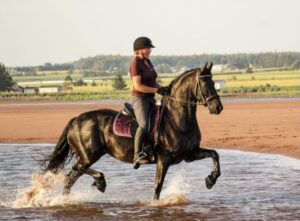 Mijn merries werken zeker niet zo hard! Dus trainen maar! Nu heb ik geluk dat we dicht bij het strand wonen. En door laag water draven is een goede manier om spieren op te bouwen! Mijn merrieveulen hoeft niet met haar mem naar het werk. Dus oefenen maar! De keuringstraining van nu ziet er wel zeer anders uit dan toen! Het is nog steeds van groot belang dat een veulen leert om aan de hand mee te stappen en stil te staan. Daar zijn we dus mee aan het trainen. En dan maar hopen dat ze netjes (naast mem) blijft draven! Dat laatste kun je oefenen wat je wilt, dat blijft een moment opname. Helaas dit jaar geen keuring in Canada, maar nu is er getraind voor de video opname. We zijn benieuwd!