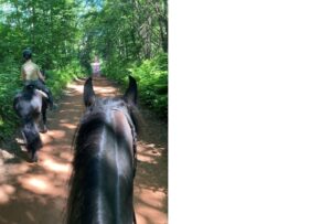 Maar voor de keuring eerst een groepsbosrit. Dan kunnen we mooi de afstand voor de World Friesian Tour! Best wel interessant dat dat idee in Zweden tot stand gekomen is waar mijn zusje deel uit maakt van de fokvereniging daar. Small world 😉