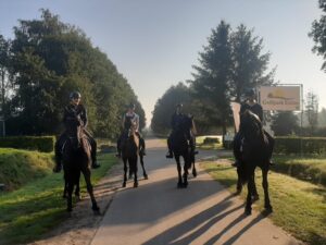 De hengsten hebben nog anderhalve week te gaan tot de eindbeoordeling. Ze zijn fris en laten in de training een mooie progressie zien. Maandag zijn de hengsten aangespannen, gisteren werden ze onder het zadel gereden en vandaag werden de hengsten voorbereid op de observatie van vrijdag als ze gereden zullen worden door gastmenner Demi van Nispen. Morgen hebben ze een rustig dagje. De paarden worden veel buiten getraind en dan is het uiteraard genieten bij een fris novemberzonnetje, zoals het filmpje hieronder laat zien.