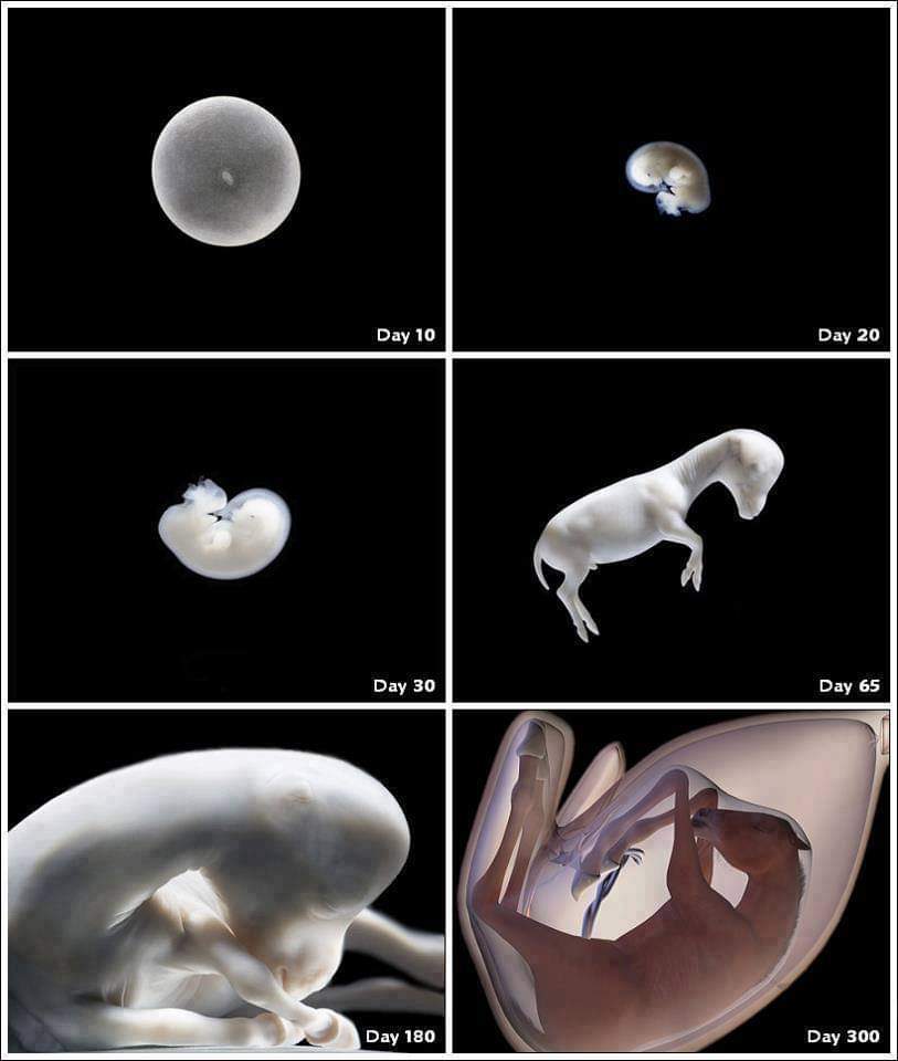 Gelukkig gaat tot nu toe alles heel goed. Roza is nu 180 dagen drachtig dat betekent dat het veulen nu de grote heeft van een hond van circa 9 kilo. In maand vijf van de dracht groeien veulens het hardst. Begin van maand vijf heeft het de afmeting van een kat en weegt ongeveer 2 tot 3 kilo. In 1 maand is het gegroeid van dik 30 cm tot ongeveer 60 cm, een keer zo lang dus. Ook heeft het veulen inmiddels de eerste maan en staartharen en is op zijn rug gaan liggen. Dit is van groot belang omdat de baarmoederhoornen van de merrie zich sluiten. Hierdoor is er minder ruimte in de baarmoeder. Het veulen kan zich minder goed bewegen, behalve het hoofd en de benen die blijven bewegen. Ook kan je het veulen als je geluk hebt zien bewegen in de buik van de merrie. Kijk, zei ik tegen Hessel, ons veulen beweegt terwijl ik Roza aan het poetsen was. Hessel keek op en liep op ons af. ‘Ik zie niks’, zei hij. Nee dat is altijd zo, net zag ik het nog of kan dat niet? ‘Jawel’, zei Hessel. ‘Alhoewel het veulen nog erg diep in buik ligt, je moet echt even geluk hebben om iets te zien.’ Terwijl Hessel weg liep pakte ik mijn telefoon zodat ik het snel kon filmen als het weer zou bewegen.
