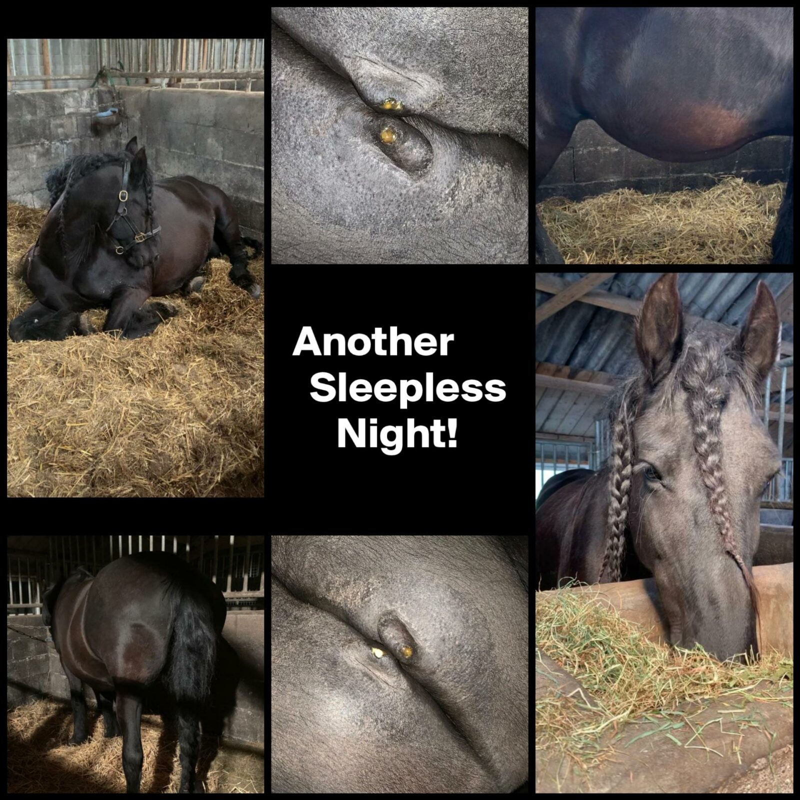 Na vier nachten waken lag ik afgelopen nacht met grote ogen in bed en Roza kegelt rustig door. Heb ik overal aan gedacht? Is alles klaar voor de bevalling? Kan ik dit wel alleen? Waar is Hessel nou als je hem nodig hebt? Rustig blijven Es, zei ik tegen mezelf. Vorig jaar was ik ook alleen toen Nine geboren werd en ook dat ging goed. Hessel heeft vertrouwen in me en zegt dat ik het kan en ik heb zijn schoondochter Maaike, die ook dierenarts is, achter de hand. Alles komt vast goed. Uitgeput viel ik in slaap……en nog steeds geen veulen, we wachten weer af.