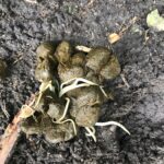 De volgende dag was ik er natuurlijk alweer om te kijken hoe het ging. Ze waren blij me te zien en wilden wel in me kruipen zo aandoenlijk. Na het knuffelen ging ik op zoek naar de mest. We hadden ze immers voor vertrek nog ontwormd. Nou ik hoefde niet lang te zoeken ….. Wat een vieze lange spoelwormen zaten er in de mest. Je kan bijna niet geloven dat dat in de darmen van onze veulens heeft gezeten, bah! Nu een paar dagen verder zijn de veulens helemaal gewend. Ze zijn niet meer zoekende naar de merries en hebben hun draai gevonden. De merries hebben helemaal geen last gehad, die waren er blijkbaar wel aan toe dat hun kroost de deur uit ging. En Hessel? Die is helemaal blij. Die kon natuurlijk niet wachten en heeft Nanja van de week al haar eerste menlesje gegeven. Daarover volgende week meer. Waarschijnlijk is er maar één die zich nog het meest druk heeft gemaakt en dat ben ik ……