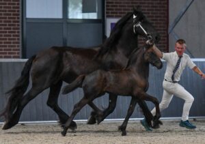 Wat was het weer een drukke, bijzondere week! Een week van enthousiasme en plezier om met Maike naar de veulenkeuring te gaan. Maar ook een week van keuzes maken en brainstormen over het drachtig krijgen van Nanja van het Leuven, onze Stermerrie die nog steeds niet drachtig is. Afgelopen zaterdag zijn we met Maike NP fan de “Hesterhoeve” naar de keuring in Oldeholtpade geweest van fokvereniging Het Friese Paard Wolvega e.o. In alle vroegte hebben Berber en ik Roza en Maike ’s morgens gewassen en gepoetst. Het knippen van de haartjes langs de oren vond Maike iets minder prettig maar voor de rest ging het prima. Nadat we onszelf in onze nieuwe polo’s hadden gestoken waren we er klaar voor. Echt super lief dat we deze polo’s hebben gekregen van mijn vriend Henk, beschikbaar gesteld door Ter Arkel Tegelzet & Kitbedrijf. Aan de outfit kon het niet gaan liggen…..
