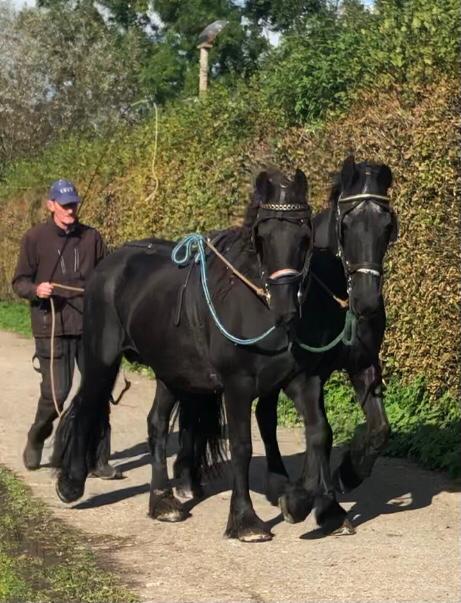 Gelukkig is onze Stermerrie Roza alweer 2,5 maand drachtig van Jehannes 484. Ze loopt tevreden in het land met Maike nog aan de voet. Rond drie oktober gaat Maike naar Rene, haar nieuwe eigenaresse en mijn Nine gaat mee. Samen zullen ze daar met waarschijnlijk nog een merrie veulen de eerste drie jaar opgroeien, echt een fijn idee. ‘Als Maike weg is dan pak ik het rijden met Roza weer op’, zei ik tegen Hessel die daarop bedacht. ‘Dan ga ik weer verder met Roza voor de wagen.’ Hij begon te glunderen. Hessel keek mij en lachte. ‘Es, nog eenmaal een zesspan voor de wagen aan het einde van het jaar, dat zou fantastisch zijn! Dromen zijn er om uit te laten komen, we gaan het zien…