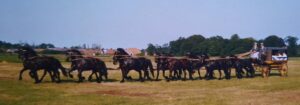 Na een paar rondjes en verschillende lijnen door de bak te hebben gereden kon de marathonwagen erachter. Onvoorstelbaar wat deed Nanja het goed, of ze het dagelijks doet. Hessel zat met een grote glimlach op de bok. Het wordt geen zesspan maar een twaalfspan!! Net als dat ik vroeger een keer gedaan heb! Een twaalfspan zei ik, geweldig dat gaan we doen Hessel en jij kan dat. Hessel moest lachen en zei “hou toch op Es, dat was vroeger en waar haal ik nog zes paarden vandaan”. Ik keek hem met een glimlach aan en zei “ laat dat maar aan mij over, waar een wil is is een weg” Als je het maar laat hoorde ik hem nog net zeggen toen hij weer triomfantelijk voorbij kwam met onze prachtige Nanja. Wat een wereldpaard.
