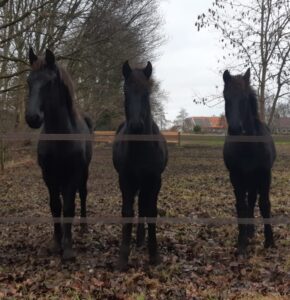 Zo zaten we van de week nadat we het stalwerk hadden gedaan samen aan de koffie. Heerlijk even opwarmen bij de kachel. ‘Hé Hessel’, zei ik. Hessel keek mij aan en fronste zijn wenkbrauwen. Meestal als ik zeg ‘hé Hessel’ dan weet hij dat ik weer iets bedacht heb. ‘Ja’, zei Hessel met een afwachtende toon. Roza, onze Stermerrie, is nu bijna zeven maanden drachtig van Jehannes 484 Sport, het wordt tijd om weer een definitieve hengstenkeuze te maken.