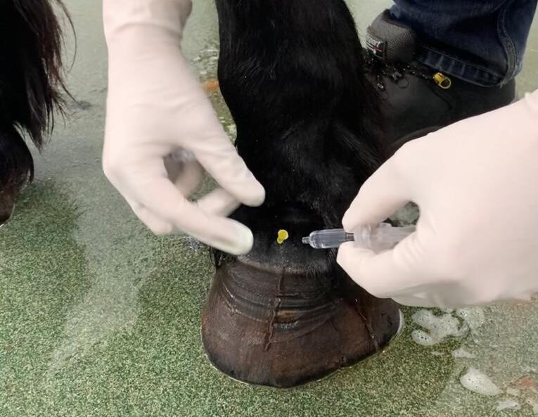 Daar stond Wiebe midden in de röntgenkamer met achter hem op het beeldscherm de foto’s. ‘Het is duidelijk’, zei de arts. Op de foto’s is duidelijk te zien dat Wiebe in beide voorhoeven verbening van het hoefkraakbeen heeft. Dit ontstaat als de beide kraakbeenderen op de takken van het hoefbeen verharden door kalkafzetting. Normaal zijn de hoefkraakbeenderen zeer sterk en veerkrachtig en heel beweeglijk. Een gezond kraakbeen heeft geen kalkafzetting. Een goede bewegelijkheid van deze hoefkraakbeenderen is van grote betekenis voor het hoefmechanisme en daarmee ook voor een goede doorbloeding van de ondervoet en een goed schokdemping. Terwijl ik de arts aanhoorde keek ik vluchtig naar Hessel en Berber en zag bij hen ook een stukje opluchting. Natuurlijk weet ik dat dit niet goed en niet te genezen is, maar we kunnen er wel iets aan doen zodat hij geen pijn meer heeft en ik hem weer recreatief kan gebruiken. Deze aandoening komt vaak voor bij Friese Paarden en is ook gerelateerd aan de leeftijd. Je ziet het vaak ontstaan boven de 12 jaar. Ook speelt erfelijkheid hier een rol in. Daarnaast zie je het vaak bij paarden die veel op de weg lopen of overbelast worden in de training. Dat laatste is niet aan de orde, Wiebe is mijn maatje en gebruik ik puur recreatief nooit te lang en te veel en op buitenrit loopt hij niet op het harde. Ik wijd het dan ook maar aan zijn leeftijd, aanleg en erfelijkheid.
