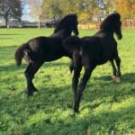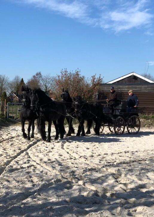 Wie wel drachtig is, is Roza fan de “Kromme Jelte” inmiddels is ze bijna vijf maanden drachtig van Jehannes 484. Roza komt uit een heel goed fokkende lijn en is nu drachtig van haar 13e veulen. Het is een sterke, klassieke merrie met veel behang. En ondanks dat ze 16 jaar is heeft ze zich voor een fokmerrie heel goed bewaard na zoveel veulens. Geen hangbuik of holle rug, maar nog steeds een mooie bovenlijn. Om er zeker van te zijn dat het allemaal goed gaat en er zeker van te zijn dat het veulen er nog in zit heeft Hessel haar deze week nog even rectaal gecontroleerd. Een mooie vruchtzak zo groot als ongeveer 1,5 voetbal. Alles is goed! Geweldig! Maar nu krijgen we maar één veulen volgend jaar. Dat is toch niks. Ook al raakt Nanja begin volgend jaar wel drachtig, dan hebben nog steeds maar één veulen in het voorjaar. Misschien is het leuk om er volgend jaar nog een drachtige Friese merrie bij te kopen zodat we weer twee veulens hebben? Terwijl ik het zei dook ik achter Roza weg en begon haar te poetsen zodat ik Hessel niet zag. Hessel wordt niet goed, het begon met één fokmerrie en nu begin ik al over een derde. Het bleef even stil. En na een paar tellen hoorde ik Hessel zeggen. ‘Nou Es dat is nog niet zo’n gek idee.’ Verbaasd kwam ik overeind en keek over Roza’s rug naar Hessel. ‘Kijken kan altijd’, zei Hessel, met een grote glimlach op mijn gezicht ging ik door met poetsen. Hij zegt in ieder geval geen nee! Mijn dag kon niet meer stuk…