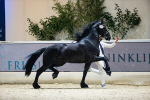 Het was een rubriek die lastig te plaatsen was. ‘De hengsten hadden veel spanning en daarmee komt de beweging onvoldoende uit de verf’, lichtte Sabien Zwaga toe, voorzitter van de jury. Toch was het rastype, veel behang en de fraaie voorhand van Boet 516 goed voor een eerste plaats. ‘Hij heeft een goede stap en een hele fijne draf met goede verruiming’, lichtte Zwaga toe.