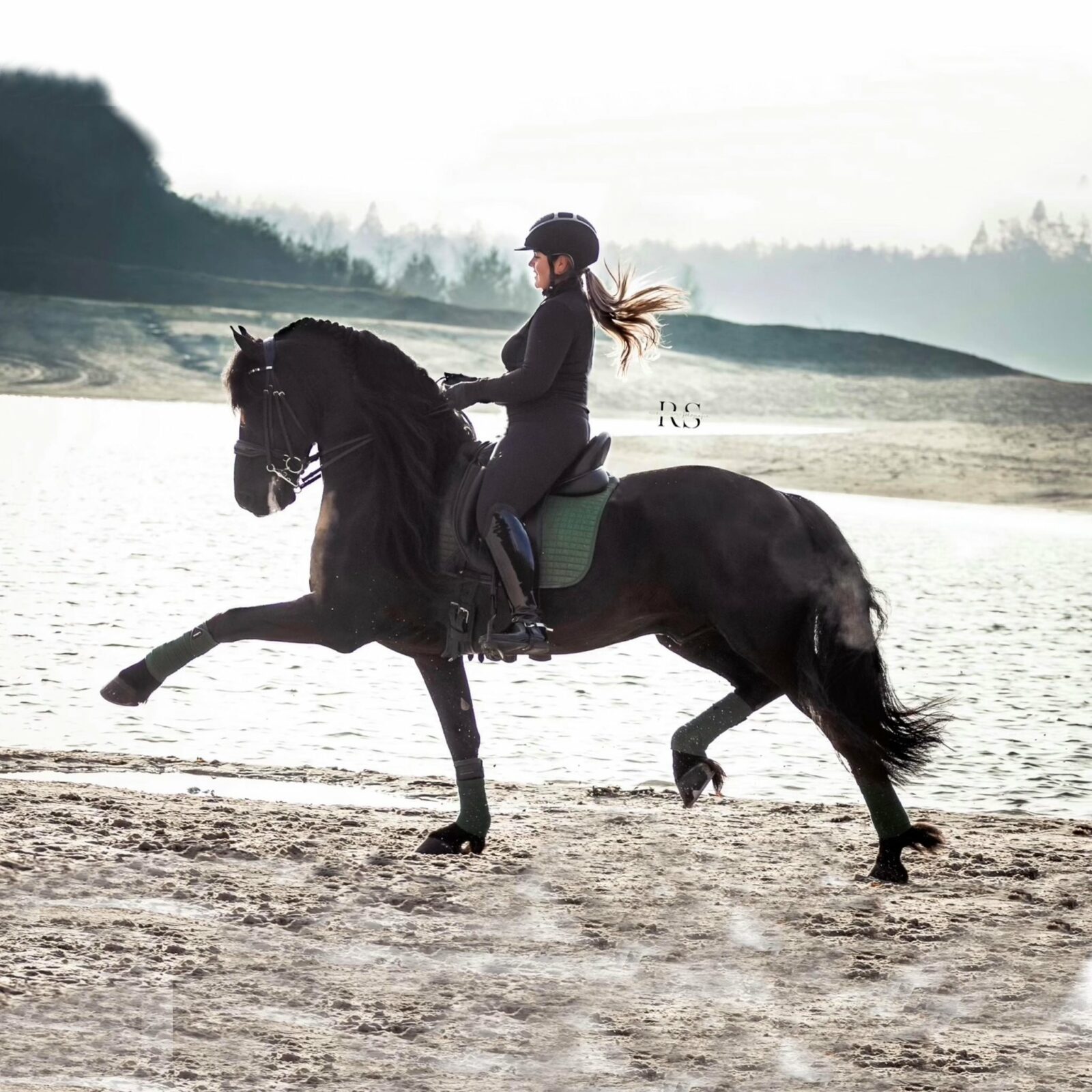 Tijdens het onderlinge subtopmeetmoment Noord-Sleen klasseerde Britt Muis zich officieel in de Grand Prix met It’s Britt’s Hebbe (Olgert 445). De 26-jarige amazone was al een jaar niet met Hebben op wedstrijd geweest. ‘Ik ben super blij!’, begint Muis lachend te vertellen. ‘Een jaar geleden was ik met Hebbe op wedstrijd en da was nog in de U25. Inmiddels moet ik de ‘grote’ Grand Prix rijden en dat voelde altijd wel een stukje moeilijker dan de U25. Vooral de andere lijnen in het draf gedeelte en de zigzag in de galop waren punten waar ik tegenop zag. Het zijn allemaal wel lastige dingen, maar het is gelukt!’