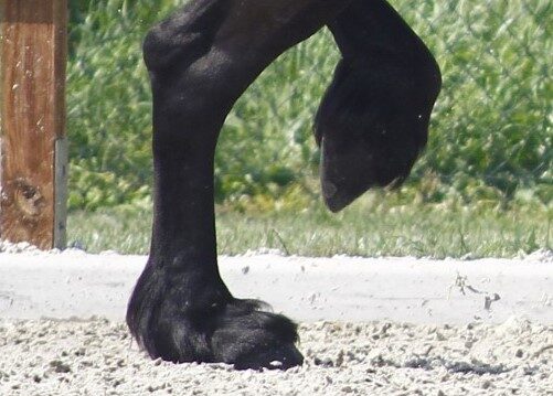 Tijdens het klinisch onderzoek viel het Van der Lee op dat de huid in de kootholten van Wimke erg dik en rimpelig aanvoelde: ‘Dusdanig ernstig dat ik vermoedde dat Wimke last had van chronisch progressief lymfoedeem (CPL). CPL is een aandoening die met name bij koudbloedpaarden, trekpaarden maar ook Friese paarden voorkomt. Waarom CPL vooral bij bepaalde rassen voorkomt is nog niet geheel duidelijk. Bepaalde type paarden zijn gevoelig voor CPL en waarschijnlijk is het erfelijk. Dat betekent dat het aan te raden is om niet te fokken met dieren en bloedlijnen waarbij deze aandoening is geconstateerd’.