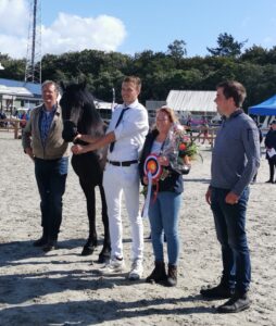 Het reservekampioenschap was voor enter Sterre fan ‘e Ridderdijk (Auwert 514 x Eibert 419), gefokt en in eigendom van Annie en Tiemon Duiven uit Hartwerd. De langgelijnde Sterre is voorzien van droog beenwerk, stapt actief en draaft met takt en ruimte. Sterre is een dochter van Modelmerrie Silke fan ‘e Ridderdyk Model AAA (Eibert 419) die op zaterdag nog zal optreden in de rubriek met Modelmerries.