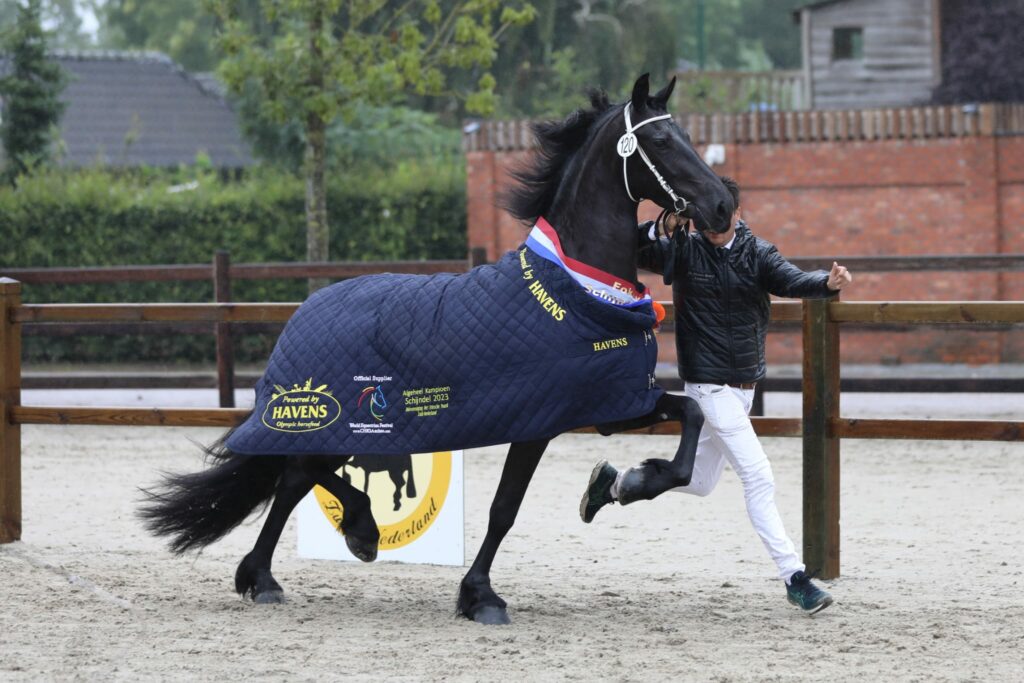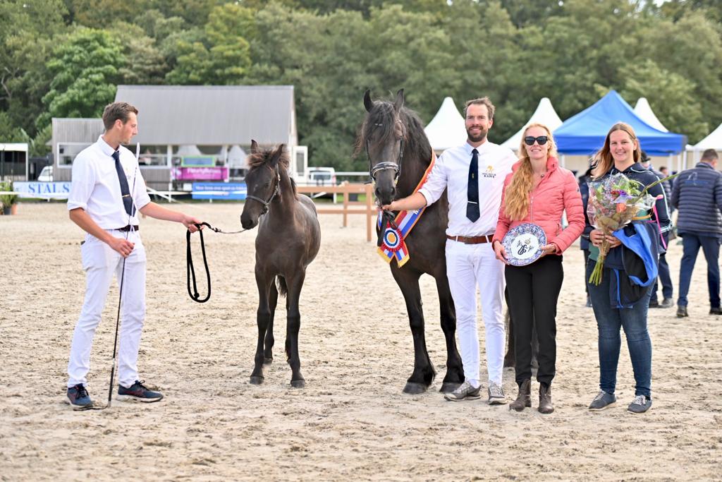 Ester Reen sprak het publiek toe namens de jury bij de beoordeling van in totaal zes merrieveulens in de kampioensring: ‘het was wikken en wegen, want het zijn allemaal goede veulens, dus we hebben extra gefocust op de beweging.’ Dankzij veel rastype, fijn beenwerk en veel kracht en balans in zowel stap als draf werd Tineke, gefokt en in eigendom van Tineke de Boer uit Noordwijk, de uiteindelijke CK kampioen.