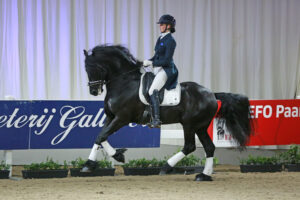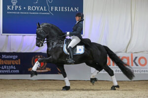 Natuurlijk ontbreekt Elias 494 niet in het rijtje Sport Elite hengsten. Een waarachtig ambassadeur, omschreef Hergen die Elias 494 fantastisch zag piafferen. ‘Daar hebben de Friese paarden aanleg voor. De kleine versnellinkjes die Elias 494 laat zien en vanuit de verzameling zo doorgaan in een uitgestrekte stap zijn het toppunt van africhting.’