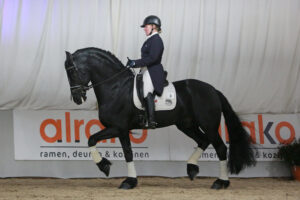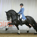 Pas enkele maanden is Martzen 521 stamboekhengst. ‘Een hele elegante hengst met luxe voorkomen’, aldus Hergen die aangeeft dat de hengst zich flink ontwikkeld heeft. ‘Prettig is te zien dat Harmina hem simpel kan rijden op een trens, de hengst een vriendelijke orenspel heeft en attent is op de ruiter.’