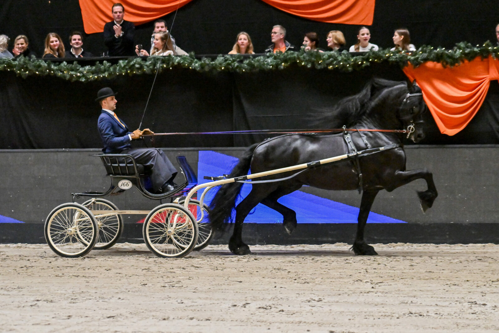 De derde en laatste selectiewedstrijd van de Horses2fly KFPS indoor tuigcompetitie vond op woensdagavond 3 januari 2024 plaats op IICH in Groningen. De grote groep 4-5-6 jarigen werd weer in twee delen verreden waarna er een overkamping volgde met de acht best presterende paarden van die avond. In een spannend eindslot bleven Linda Wester met HovenierWester Ferre (Eise 489), Jelmer Chardon met Gerrit R.V. (Eise 489) en Iris Sijtsma met Koendert fan ‘e Bûtemare (Nane 492) over. Ferre leek op dat moment zijn meeste power al te hebben verschoten en miste in deze slotfase de expressie en werd derde. Gerrit R.V en Koendert waren sterk aan elkaar gewaagd, waarbij bij beide paarden het mooie verheven front opvalt. Beide hengsten hadden een sterk voorbeengebruik en waren ruim in de bewegingen. Gerrit R.V. kon echter de meeste balans en regelmaat behouden en werd door juryleden Fetze Schotanus en Ester Reen naar de eerste plaats verwezen. Koendert werd tweede.