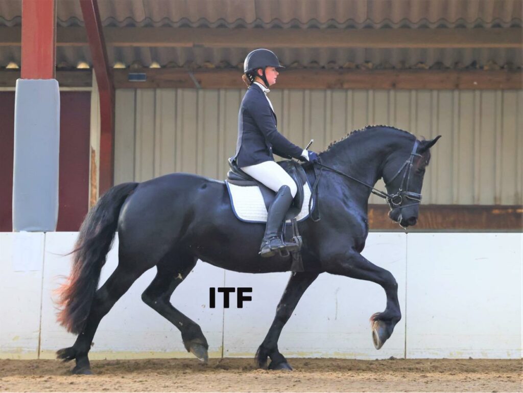 De Dressuurbokaal voor de dagkampioen van de Horses2fly KFPS indoor dressuurcompetitie op zaterdag 15 februari is gewonnen door Janneke Folkertsma. Met Hitske van ‘e Wigeri (Jisse 433) werd ze kampioen in de klasse B. Hitske kreeg nog een tweede deken opgelegd. Ze was ook de best presterende merrie van de dag. Kampioen in de L1-dressuur werd Iris Wijnstra met Melle fan ‘t Fjilhûs (Jurre 495) en het goud in de L2 was voor Demi van Nuys met Maine van de Demro Stables (Teun 505).