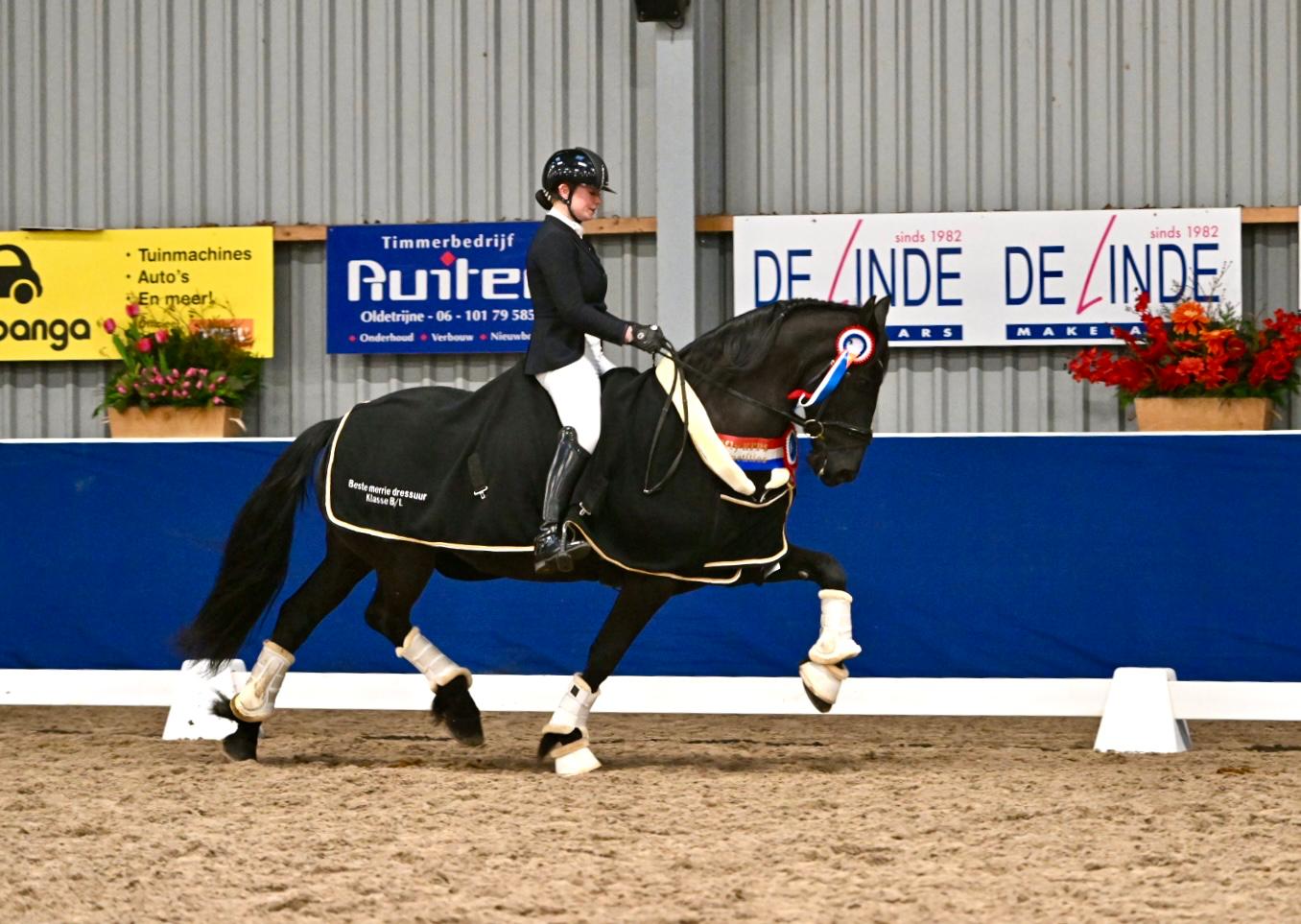 In de B had Janneke op voorhand niet de beste papieren maar met een winnende score in de finaleproef won ze de B met Hitske – die Sport in het mennen is – waarmee ze op de Friese kampioenschappen een week ervoor vierde werd. Voor Janneke kon het weekend niet stuk. Tijdens het menkampioenschap de avond ervoor haalde ze al tweemaal brons. Ook Nienke Pater wist met Olle MD fan Skoatterlân (Jouwe 485) een hele goede finaleproef te rijden waarmee ze in het eindklassement reservekampioen werd.