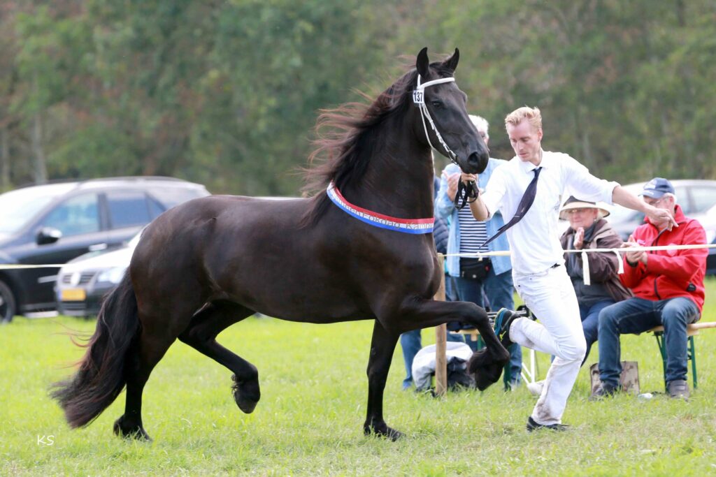 In de grote finale aan het eind van een soms regenachtige, maar vooral drukke en gezellige Friese paardendag in Harich, scheen de zon toen Janke het algeheel kampioenslint kreeg omgehangen. ‘Wat hebben we een kwaliteit gezien’, aldus juryvoorzitter Corrie Terpstra. ‘Paarden met rastype en goede bewegingen, paarden die aan elkaar gewaagd zijn.’ Het kampioenstweetal omschreef ze als goed stappende kampioenen. ‘Met veel souplesse en met kracht in het achterbeen en buiging in het spronggewricht.’