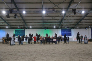Omringd door acht paarden uit zijn fokkerij werden Gert en zijn familie gehuldigd in Harich. ‘Met bewezen fokmerries, gezonde en duurzame paarden en sterk presterende sportpaarden heeft u Friese paarden zoals het stamboek het voorstaat’, aldus KFPS voorzitter Tineke Schokker, die net als Arno Brok, de Commissaris van de Koning de familie een dubbel aantal prijzen uitreikte. ‘Bovendien deelt u uw fokkerij met nieuwe fokkers die daar dan ook weer verder mee fokken.’