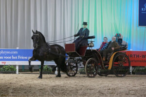 Gert en Irmy Cent stapten bij Udo de Haan in de landauer, met de door hen gefokte Yersie C. Kroon Sport AAA (Hessel 480) maakten ze een dubbele ereronde.