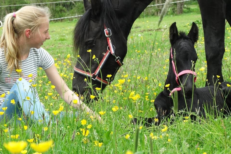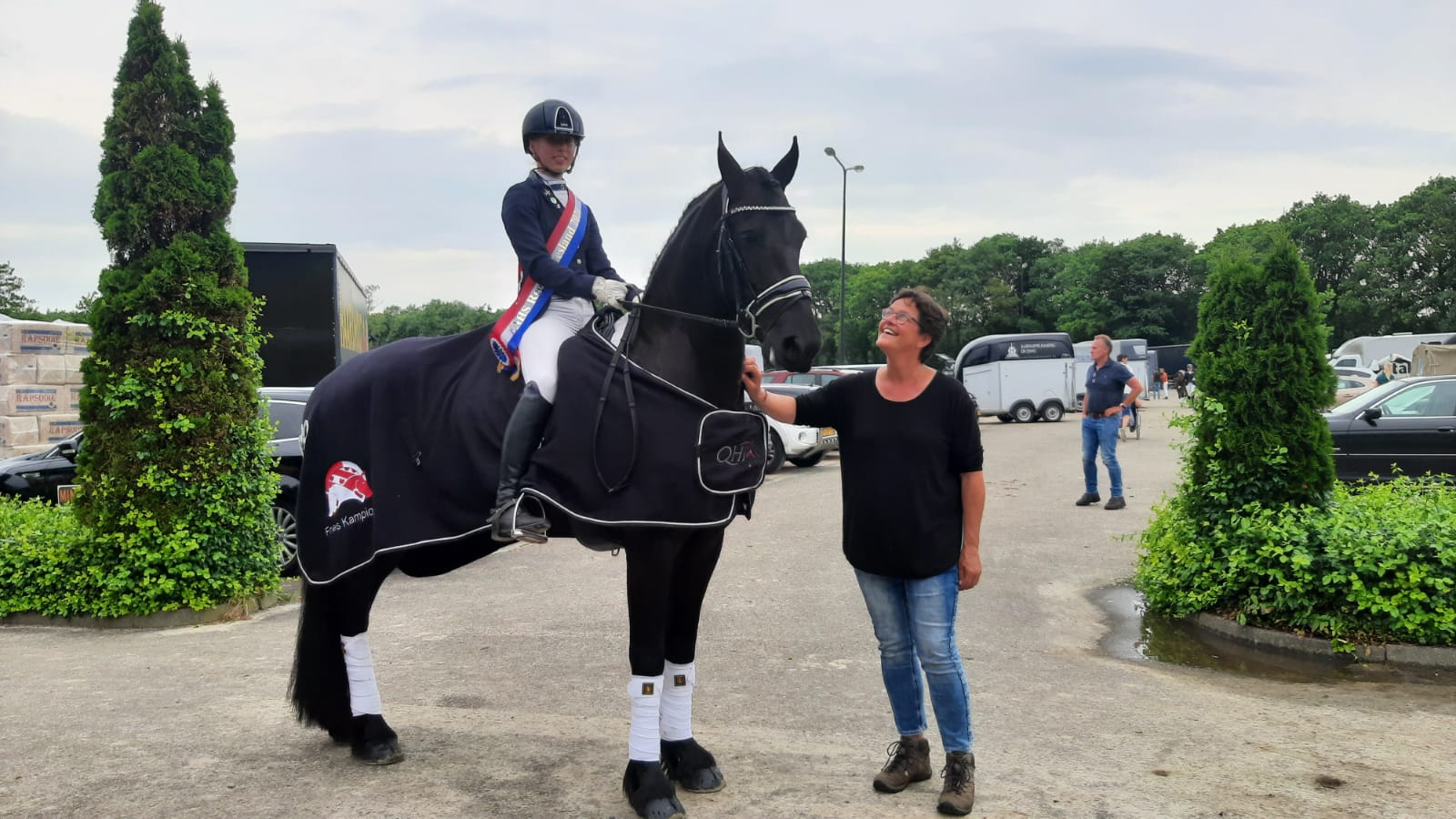 Tess Dedden en de vierjarige Evelyn P (Nane 492) zijn Fries kampioen in de B-dressuur geworden op zondag 4 juli in Harich. Ook het zilver en brons was voor Friese paarden.