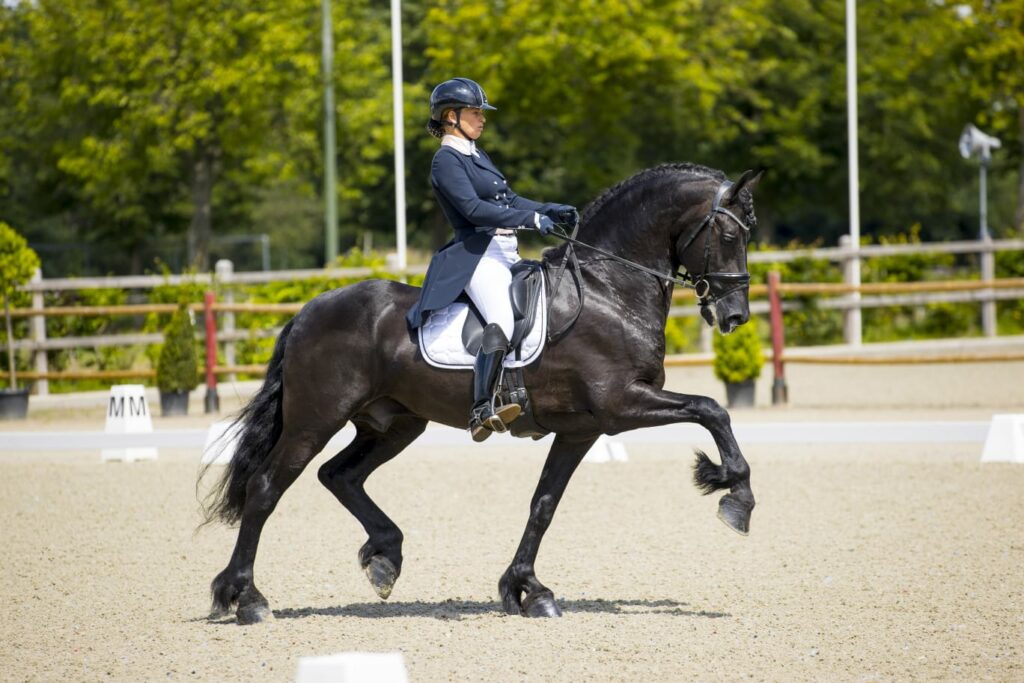 Met 73,750% wist Isabelle Vroomans met Vajen (Tymon 456) tijdens de voorrondes van het Europees Kampioenschap de hoogste score bij de vijfjarigen neer te zetten. De merrie die een paar weken geleden tijdens het NK voor Friese paarden nog kampioen in de M1 werd wist KFPS stamboekhengst Ulbe 506 (Anders 451), die met Leonie Evink donderdag de lijst aanvoerde achter zich te laten.