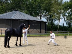 Folkert Algra uit Oudega is de fokker van Douwina van de Hofstad, die in de catalogus als ‘Hofstada’ staat aangeduid. Folkert was uiteraard in Siegerswoude om zijn merrie aan te moedigen. Zoon Sytze Algra volgde thuis de livestream, helemaal opgelucht dat Douwina de verwachting waar maakte: ‘Wij fokken met de stalnaam ‘van de Hofstad’, de ‘a’ die er bij Douwina achter is gekomen, is een typefout. Douwina is pas zadelmak en een ontzettend lief paard. Mijn dochter Gea rijdt haar. Na de zomervakantie gaat mijn vader haar voor de wagen beleren. We bekijken dan volgend jaar welke test Douwina gaat doen. We zijn onze fokkerij begonnen met de overgrootmoeder van Douwina, die werd Ster, Preferent en Prestatie. Douwina’s oma is een eerste premie stermerrie en haar moeder een Kroon Sportmerrie. En dan nu zelf Voorlopig Kroon. We zijn ontzettend trots.’