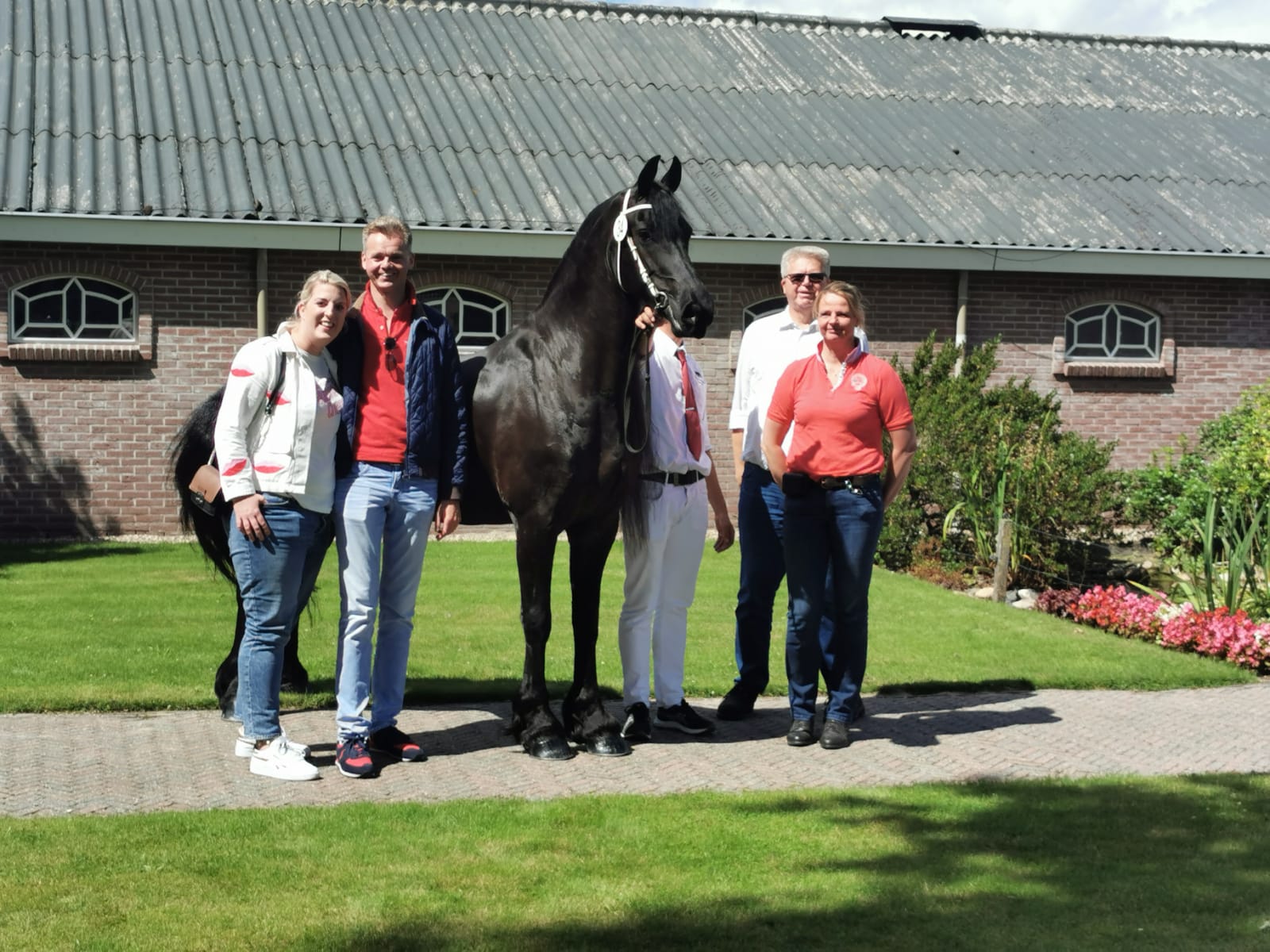 - Doete T. van Sessing Ster (Alwin 469 x Liekele 364) met de familie Tanck (Foto: Ingrid Truijens)