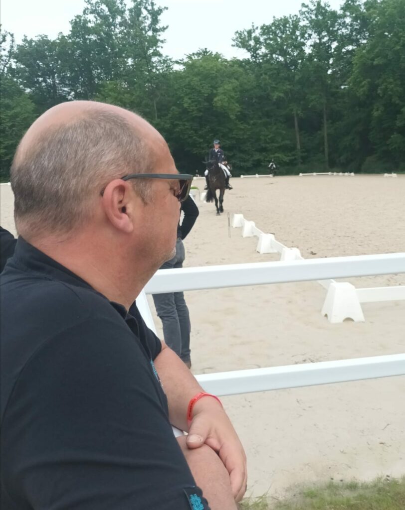 ‘Het was een erg leuke wedstrijd in Middenbeemster. Ik ben een poos bezig geweest om een goede kür te maken. Het wordt niet zo vaak uitgeschreven en zeker in het noorden niet. Ik zag de wedstrijd in de kalender staan en ik wilde de afsluitdijk wel over. Er was voor iedereen prijs en de kantine zat bomvol. Ik was zelf nog niet helemaal tevreden over onze rit. Hij maakte zich behoorlijk druk en hij moet nog een beetje leren hoe hij met de muziek om moet gaan. Ik had mijn handen wel vol aan hem, maar ik was blij dat ik hem er wel door heen kon sturen. Een jaar geleden was me dat niet gelukt en we boeken nu toch nog steeds progressie.’