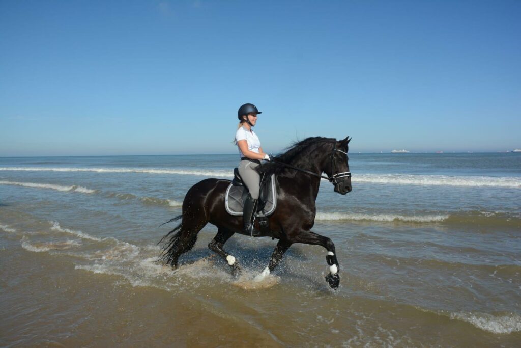 In eerste instantie had Evelien helemaal geen interesse in een Fries paard, want ze was op zoek naar een sportpaard en kende geen Friese sportpaarden in haar omgeving. Tot een vriendin haar op het ras attendeerde en de website van Stal Galloper werd bezocht. ‘Ik zag Roaske online en ze sprak me meteen aan, een typisch meisjes paard met haar luxe hoofdje en lange wimpers’. Eenmaal op stal bij de familie Lems bleek het liefde op het eerste gezicht en sindsdien zijn de twee aan elkaar verknocht. ‘Roaske is echt mijn paard, ze is lief en gezellig en dol op aandacht, en volgt me op de voet. Ze wil alles samen doen, wat ik ook duidelijk merk onder het zadel, ze is zo pittig en meewerkend dat ze soms op de zaken vooruit loopt’ lacht de amazone.