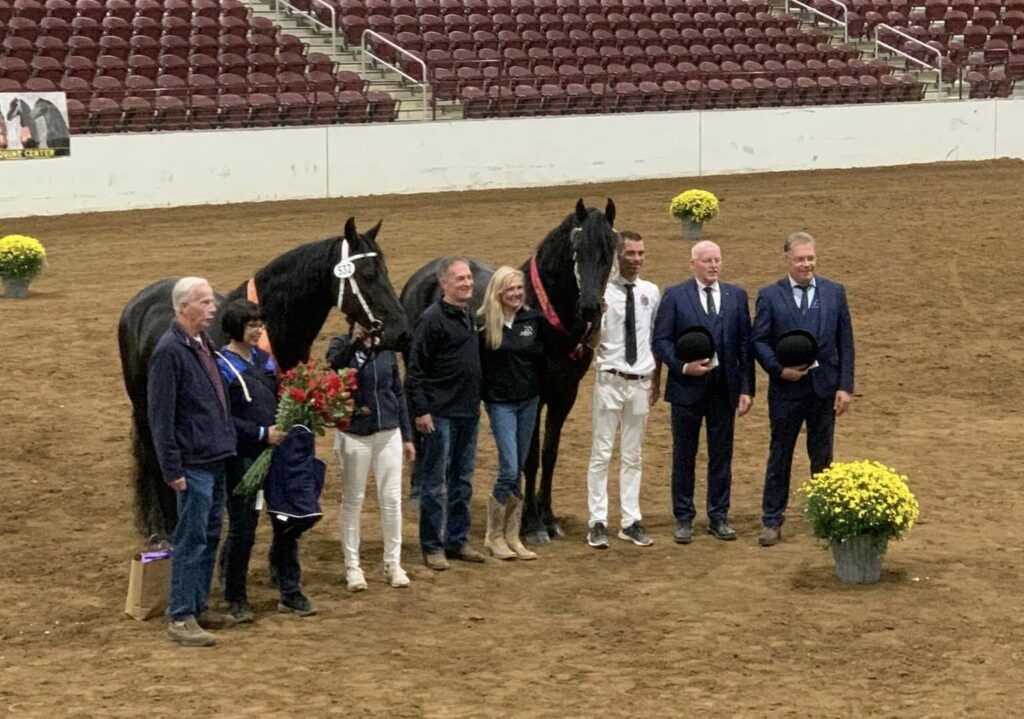 Op de Friese kampioenschappen werden ze reservekampioen in de B-dressuur: Famke Koopmans uit Abbega en de eigen gefokte, nog maar vijfjarige Jente K.W. (Julius 86 x Dries 421). ‘Spanning vloeit zo van Jente af, het was voor mij zitten en sturen.’