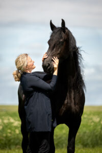 ‘Veroniek laat je nooit zitten, al moet ze bij wijze van spreken honderd Z-proeven achter elkaar lopen. Dat zou ze gewoon voor je doen.’ Na de Centrale Keuring pakt De Jong haar weer fanatiek op. ‘Ik leer enorm veel van zo’n paard. Ik rijd al mijn hele leven, maar eigenlijk ben ik een hobbyist, om zo’n paard te rijden heb je echt gevoel nodig. De bedoeling is dat ze volgend jaar onder de hengst gaat, Tymen 503 staat op ons lijstje’, vervolgt de amazone lachend. ‘Ik hoop nog meer van haar te leren en veel te genieten, we doen rustig aan en kijken waar het schip strandt. Het allermooiste is dat ze samen met haar dochter in het land loopt op ons aardappelbedrijf, daar geniet ik het meest van’, sluit ze trots af.