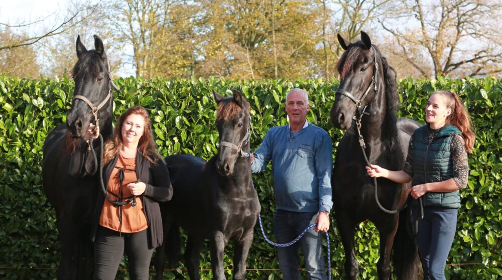 Twee weken terug streed de merrie mee in de rubriek Kroonmerries op de fokdag in Warga, waar ze een 1e premie en een uitnodiging voor de Centrale Keuring in september kreeg. ‘Haar eerste nakomeling, een 4-jarige merrie van Menne welke nog in ons bezit is, is dit jaar Ster geworden op de locatiekeuring bij Van Manen. Wij als ‘kleine’ fokkers en liefhebbers van het Friese paard genieten enorm van Veroniek en alles wat we met haar beleven.’