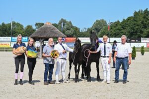 De jury liet drie paarden terug komen voor het algeheel kampioenschap en kon wel stellen dat het een groep met uniformiteit was. ‘Het zijn allen correct gebouwde paarden met een sierlijke belijning, die actief stappen en functioneel draven’, begon Manuel Gasseling de bekendmaking. ‘Een nieuwe ronde betekent nieuwe kansen en uiteindelijk was er een paard wat tot het einde zich goed presenteerde en net wat flitsender was dan de rest.’ Met die woorden kreeg Pleun van Pelinckstuin het kampioenslint om gehangen. Ook twenter Yfke Anna hield zich karig waardoor zij voor de driejarige Tjitske E. Ster (Omer 493 x Uldrik 457) van Emmens uit Nooitgedacht mocht opstellen.