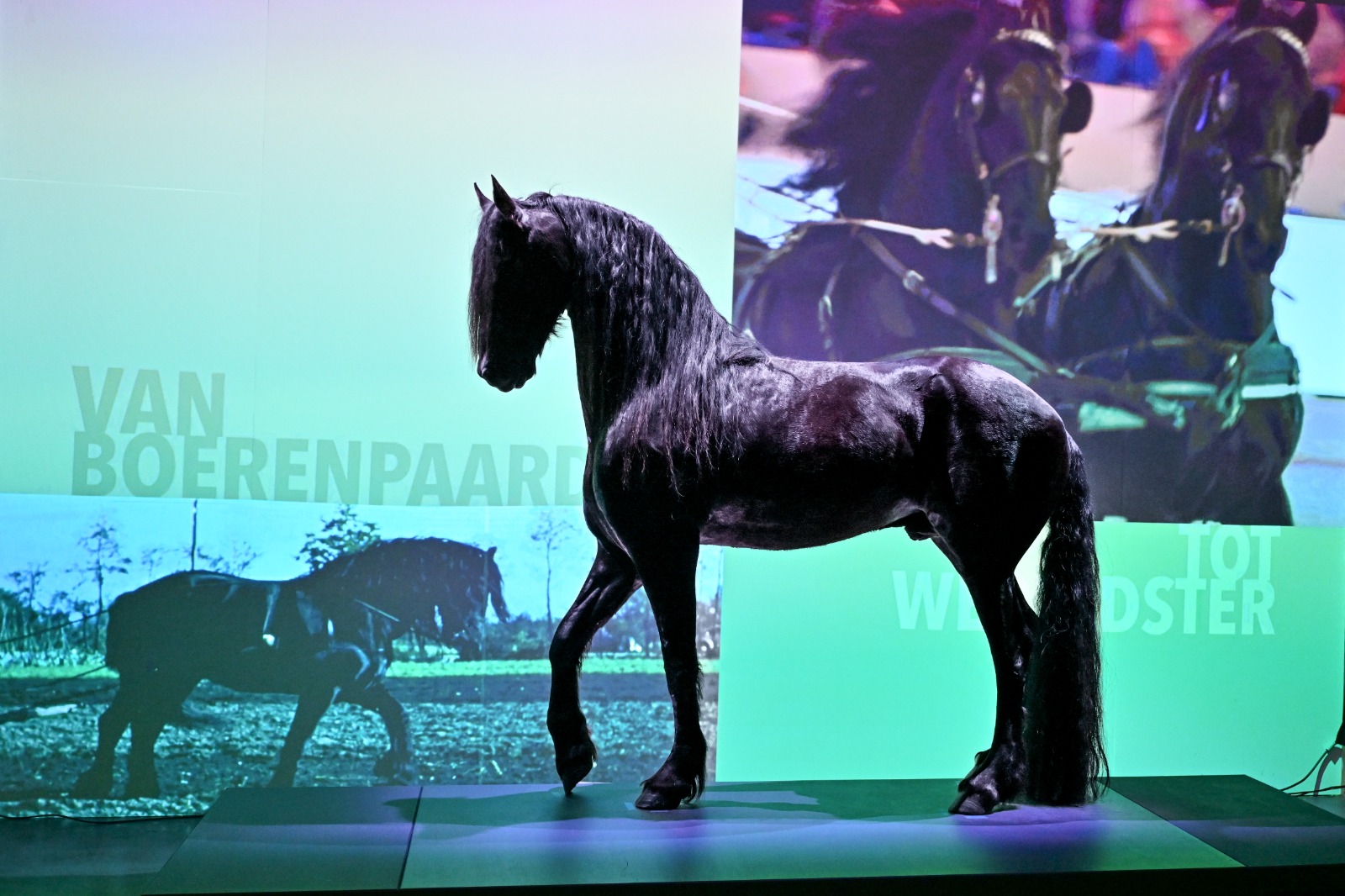 Een van de sprekers was Friese paardenfokker Anke Oosterbaan. Haar woorden over het speciale karakter van het Friese paard en het doorgeven van generatie op generatie raakten zichtbaar het publiek. De trots, het karakter en de geschiedenis van het Friese paard werden tastbaar in haar verhaal – een krachtige opmaat naar de nieuwe tentoonstelling, of beter gezegd interactief belevingscentrum waar het Friese paard, haar rijke geschiedenis, internationale allure en enorme aantrekkingskracht in volle glorie valt te bewonderen. De expositie is interactief en breed toegankelijk: van sjezen tot filmsterren, van skelet tot Wall of Fame. De prachtig opgezette (in 1995 geboren) hengst Keje fan ‘e Kilewier (Oege 267 x Jillis 301) neemt bezoekers mee in een filmisch en meeslepend verhaal over de betekenis van dit eeuwenoude ras. De expositie is al te bezichtigen, maar vanaf half juni compleet en in vol ornaat te beleven. Bezoekt u het Landbouwmuseum in mei dan krijgt u een gratis kaartje voor een herhaalbezoek.