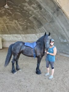 Laura kocht haar Ava toen ze nog maar een maand oud. ‘Ze had een prachtig koppie en kon fantastisch bewegen.’ Een lang gekoesterde wens ging voor Laura in vervulling, want tien jaar daarvoor zag ze haar eerste Friese paard. ‘Het was meteen ‘wauw’, ik wist niet dat er zulke mooie paarden bestonden.’ Als veulen is Ava op de keuring in Amerika geweest en kreeg ze een tweede premie. Laura begon haar merrie te rijden toen ze vier jaar was. ‘Ze heeft nog nooit een stap verkeerd gezet, terwijl ik eigenlijk nog helemaal niet goed kon rijden.’ Ava hoort eigenlijk bij de familie, vertelt Laura. ‘Ik heb twee kinderen, één dochter en Ava. Ze krijgt bij ons alles wat ze nodig heeft en ze geeft me altijd 110% inzet terug.’