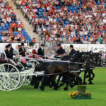 Op dinsdagavond 28 juni zullen een twaalftal Friese paarden optreden in het openingsceremonie van het CHIO in Aken. Naast de vlaggenparade staat die avond ook een gezamenlijk optreden op het programma met de uit Frankrijk afkomstige showgroep Cie des Quidams die met opblaasbare witte paarden van 3,5 meter hoog een prachtig contrast gaan vormen met de zwarte parels.