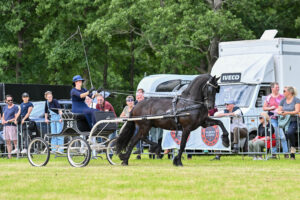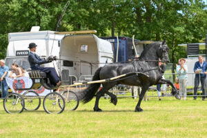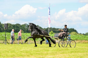 Voor sommige rijders was het even flink aanpoten op het regionale tuigconcours in Wijnjewoude. Het programma van de Hynstedei Wynjewâld bestond uit rubrieken voor tuigpaarden Fries ras en voor de KWPN tuigpaarden van Taveno. Om en om werden de rijders van beide verenigingen in de baan verwacht en dat leverde hier en daar wat snelle omspanmomenten op, maar alles verliep vlot en lukte goed.