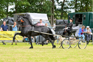 De strijd in de open klasse ging onverminderd door. Daar maakten de rijders het de juryleden knap lastig. Sterker nog, ze konden het niet eens worden met elkaar. Arbiter Ilse Niesing moest hierin de doorslag geven en gaf de voorkeur aan Tjitte VDK (Andries 415) met Jelle van der Kooi aan de leidsels. “Ik vond ze beide erg sterk maar de wijze van rijden van mijn uiteindelijke winnaar vond ik fijner. Hij was iets rustiger in de hand”. Feitse G.L. (Aan 416) met Leslie Agricola werd daardoor nu tweede nog voor Andries fan ‘e Huchten (Arjen 417) met Sale Visser in de showwagen.
