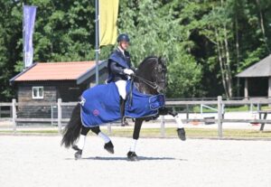 Bennie van Es en Stal Okkema’s Yeske (Michiel 442) zijn op zondag 17 juli kampioen geworden bij de zevenjarige paarden tijdens de Horses2fly Young Friesian Dressage Competition.