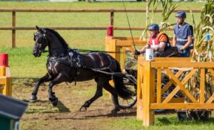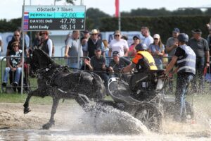 Hoe je een marathon moet rijden, dat hoefde je Anniek al nooit uit te leggen. In de pittige marathon in Lähden bleek dat opnieuw. ‘Ze ging als een speer door de hindernissen’, vertelt Jacques. ‘En dan even stappen en hup, ze was weer opgeladen en ze bleef maar gaan. Na de marathon hadden we maar liefst acht strafpunten voorsprong op de nummer 2. Vierspanmenners die ons hadden zien rijden (tegelijk met het WK Paramennen was het EK Vierspannen, red.) lieten me achteraf ook weten dat het er zo gaaf uitzag. Ik reed de marathon overigens met onze zoon Sil. Hij had niks met paarden, maar we merkten wel dat hij er gevoel voor had. Rijden of mennen trekt hem niet, maar de marathon vindt hij geweldig. Zo is het mennen een echte familieaangelegenheid. Eva doet het werk en de training met de paarden en rijdt mee met de dressuur en vaardigheid; Sil is de groom in de marathon.’