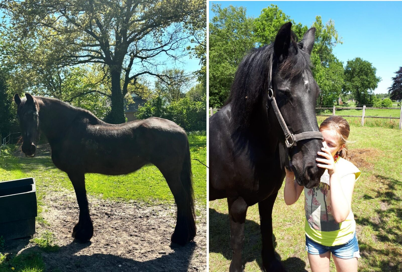 Oudste dochter Bodien weet nog goed dat ze graag bij Pytrik was. ‘We hadden bijna geen tijd om opa en oma te begroeten, we wilden altijd snel naar Pytrik toe om haar te borstelen en te knuffelen. Als we bij opa en oma in Friesland uit logeren waren, stonden we ’s morgens héél vroeg op om zo snel mogelijk naar de stal te gaan.’ Zowel Bodien als Anouk hebben het paardenvirus van hun moeder overgenomen. Na een aantal lease- en bijrijdpaarden hebben ze sinds 2022 een eigen paard. ‘Geen Fries, want we houden ook van springen.’ ‘En het aanbod van Friezen voor de sport was beperkt en erg prijzig’, vult Lucette aan.