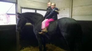 De mooiste herinnering met Pytrik? ‘Dat is dat de dochters Bodien en Anouk, toen ze klein waren zo graag bij Pytrik en bij opa en oma waren. Ze ‘reden’ dan ook op haar, met hun beentjes kwamen ze maar nauwelijks onder het zadel uit. Mijn moeder vond dat maar niks, zo’n groot paard met van die kleine meisjes, maar Pytrik ging o zo voorzichtig met ze om, alsof ze haar veulens waren. Heel ontroerend vond ik dat.’