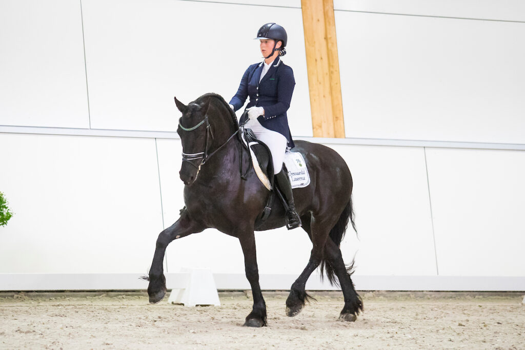 Al een jaar of zeven vormen Tsjalling en Laura een combinatie. ‘Hij stond bij ons in training toen zijn eigenaresse zwanger werd. Omdat ze dacht dat ze niet meer zou rijden als ze eenmaal kinderen had, zette ze hem te koop. En toen heb ik hem gekocht. We zijn in het L2 begonnen en hebben rustig alle klassen doorlopen. Nu zijn we dan in de allerhoogste klasse aanbeland! Het is niet zo dat ik hem nu zo vaak mogelijk ga starten, ik ben heel zuinig op hem; het is tenslotte al heel bijzonder dat hij er nog is … Ik heb geen planning, en ga alleen op wedstrijd als hij heel fit is. Misschien dat ik één wedstrijd in de agenda zet voor hem: het EK Friese paarden in oktober… al is dat dit jaar geen EK vanwege corona.’